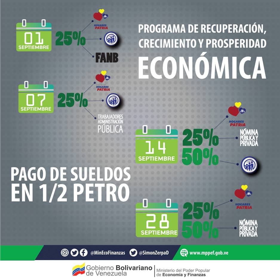 #Enterate │Conoce el cronograma especial de pago establecido por el mes de septiembre para las pensiones, Hogares de la Patria y la nómina pública y privada en el marco del Plan de Recuperación, Crecimiento y Prosperidad Económica